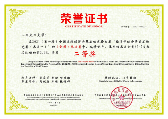 2021年第四届全国高校经济决策虚仿实验大赛是由中国数量经济学会博弈论与实验经济学专业委员会和虚拟仿真实验教学创新联盟文科类学科领域工作委员会经济管理类专业工作组共同主办,是一种为适应数字经济、数字金融、数字财政的科技发展趋势,提高学生的决策思维能力、经济数据与金融数据分析能力、经济模型与金融模型应用能力、财政管理知识应用能力,深化虚拟仿真与教学实践相融合而举办的比赛。