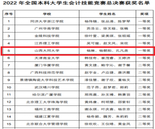 为提升高等院校财会专业教学质量及会计技能教学水平,由中国商业会计学会主办、江苏理工学院承办、厦门九九网智科技有限公司技术支持的“2022 年全国本科大学生会计技能竞赛”于 2022 年 10 月 29 日及 2022 年 12 月 3 日分别举行线上区域赛和总决赛。本次区域赛共有来自29个省(自治区直辖市)的234所本科院校的1571名学生报名参赛。按照比赛规程,比赛设置了北、东、西三个区域赛,总决赛由区域赛选拔出的50所学校参加。必发集团7790参赛队伍以北区第一名进入总决赛,同来自西南财经大学、成都理工大学、广东财经大学、山西财经大学、新疆财经大学等选手同台竞赛,经过激烈角逐我院21级会计专升本班孔凡尧、杨琳、杨朝阳(指导老师吴海燕、李婷)取得了全国一等奖的好成绩。