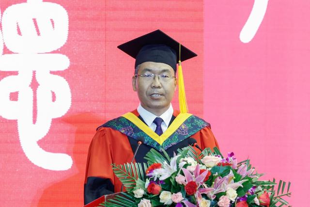 校党委常委、纪委书记、监察专员郭继林宣读校党委关于表彰2023届优秀本科毕业生的决定,宣读校党委关于表彰2023届研究生先进集体、优秀个人和优秀学位论文指导教师的决定。