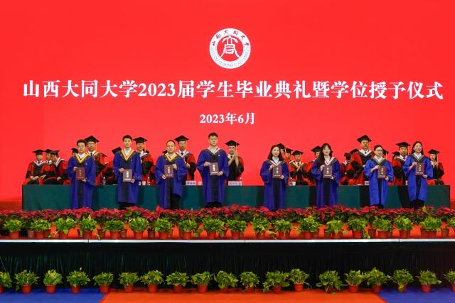 研究生毕业生代表、2020级化学专业冯海弟同学,本科毕业生代表、云冈学学院2019级文物保护技术专业高琳同学发言,代表全体毕业生向尊敬的师长、可爱的母校表达深厚感恩之情,寄语同学们找到自己的方向,成就最好的自我,绽放最美丽的人生;坚定理想、相信努力,心怀感恩、永念同大,牢记嘱托、做新时代中国青年,在时代的坐标上不断标记出璀璨夺目的出彩青春,让青春韶华的光芒闪耀梦想星空。