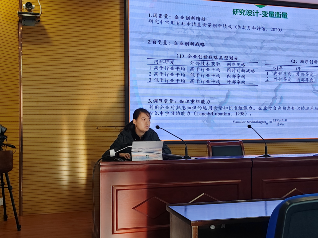 会议中,学术氛围浓厚,内容循序渐进,许昕博士与现场师生互动,让大家在时序性创新战略对企业创新绩效的影响方面有了更加深刻认识。