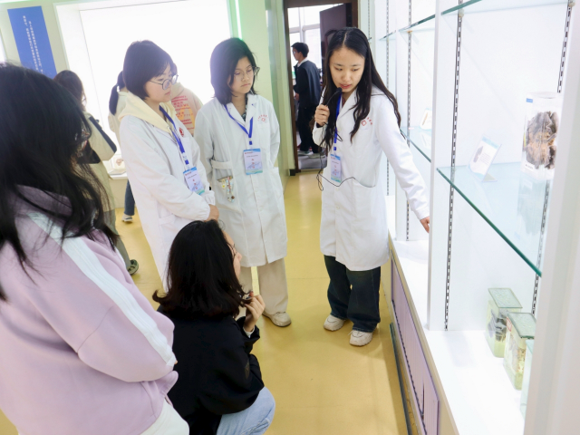 在生命健康教育厅,专业人员现场演示心肺复苏、包扎方法等急救技能,并邀请学生进行互动体验。同学们积极参与,在操作中掌握了实用的急救知识,深刻体会到守护生命的责任与意义。在断层病理标本厅,病理标本展区、胚胎畸形展区、冠状断层标本展区中陈列的展品,配合讲解人的细致讲解,同学们以直观而震撼的方式展现生命的脆弱与疾病的危害,引发学生对生命健康的深入思考。