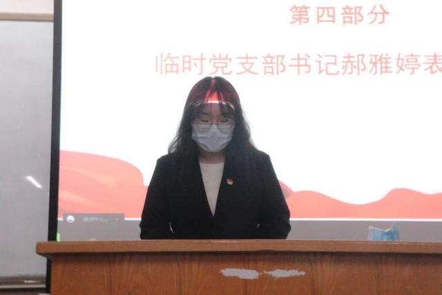 为进一步做好校园疫情防控工作,充分发挥基层党支部战斗堡垒作用和广大党员的先锋模范作用,经校党委研究决定,我院清和苑七号楼临时党支部成立大会于4月21日在行知楼704教室召开。院党委副书记武全、院教学科研办主任孙洁晶、临时党支部指导教师李月明、专职辅导员杨玲玲、临时党支部书记及支委参加会议,其他党员参加线上会议。会议由院党委副书记常福英主持。