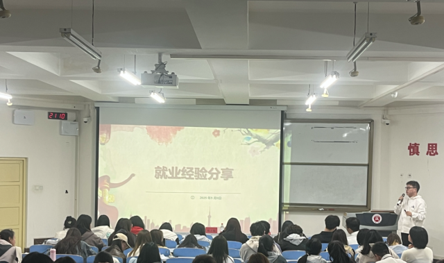 会上由2021级工商管理一班安敏结合自身经历,详细分享了就业心得。他从求职心态调整、简历制作技巧到面试实战经验,毫无保留地向同学们传递自己在就业道路上的探索与收获,拓宽了同学们的就业视野,让大家深受启发。