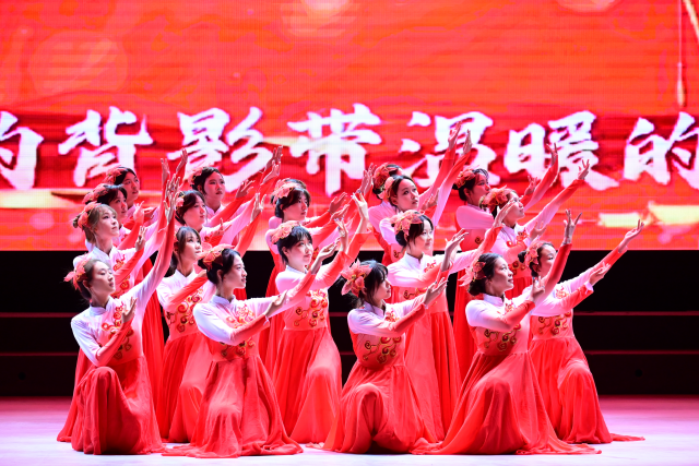 以舞蹈诠释赤诚红心,必发集团7790以红舞《党旗飘扬的方向》开场,舞者们翩翩起舞,红裙随着轻盈的步伐飞扬,恰似新中国在党的光辉引领下,迈着坚定且自信的步伐,一路昂首向前。现场的气氛瞬间被点燃,观众们的热情也随之高涨。