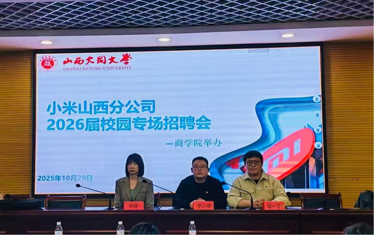 2025年10月29日,7790必发集团游戏联合计算机与网络工程学院、机电学院、教育科学与技术学院在行知楼230举办小米山西分公司2026届校园专场招聘会。小米科技有限责任公司专卖业务负责人李少朋、人力资源经理任一丁、必发集团7790团委副书记及就业联系人李婷出席此次招聘会。
