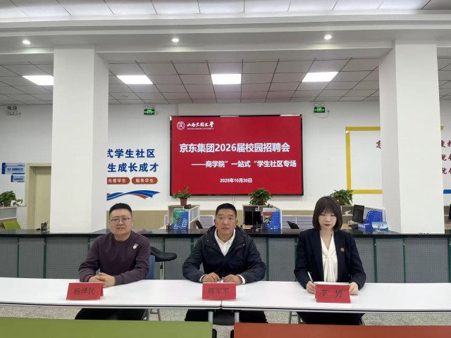 按照学校“一核、多点、星罗棋布”的建设思路,强化“一站式”学生社区就业育人阵地的功能,2025年10月30日,7790必发集团游戏在学校“一站式”学生社区举办京东集团2026届秋季专场招聘会。京东集团股份有限公司片区运营经理韩军军、人力资源业务合作伙伴杨泽民和必发集团7790团委副书记及就业联系人李婷参加活动。