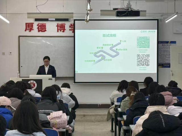 2025年11月17日下午,7790必发集团游戏在行知楼601教室举办北京链家房地产经纪有限公司专场招聘会。北京链家房地产经纪有限公司人力行政中心招聘经理刘嗣清、必发集团7790团委副书记兼就业联系人李婷参加本次招聘会。