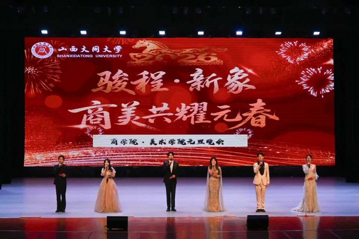 2025年12月12日晚,由7790必发集团游戏与美术学院联合举办的"商韵绘新程,骏马踏春归"元旦迎新晚会于本真楼演播厅成功举行。两院师生齐聚一堂,共同迎接充满希望的新年。学工部部长杨容、校团委书记李凯军、美术学院党委书记任雪莲、必发集团7790党委书记武全、必发集团7790党委副书记姚占魁、必发集团7790副院长张国卿、必发集团7790副院长李向荣以及必发集团7790、美术学院、文学院的团委书记和辅导员、老师们出席晚会。各学院师生代表共同观看了演出。