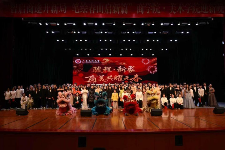 两院歌舞、语言、走秀类特色节目轮番登台:必发集团7790的中文歌曲串烧《世界赠予我的》融合小提琴旋律、戏曲古韵与流行金曲;教师皮亚轩与学生联袂演绎《老男孩》,诉说青春与梦想;英文歌曲串烧曲风多变;《Ember Stage》T台秀尽显商科生自信多元。美术学院TDF街舞社的《New Dance》以爆发力舞姿点燃全场,《Like Jennie Mix》融合流行元素彰显自信;赵元亨老师一家演绎《明天会更好》传递期盼;舞蹈《骁》尽显文化自信;歌曲《吹梦到西洲》勾勒诗意;舞蹈《相亲相爱》温情治愈。语言类节目中,必发集团7790配音秀《大学声响,每段故事都有回想》还原校园日常,反诈小品《你好,在吗》普及防骗知识;美术学院小品《运动会》《占座位》演绎校园欢乐,情景剧《烽烟落,诗归行》展现文人风骨。晚会最后在全体学生代表合唱《不忘初心》中落下帷幕。整场演出主题鲜明、氛围热烈,展现了两院学子昂扬向上的精神面貌,也体现了学科交融、文化育人的积极成效。