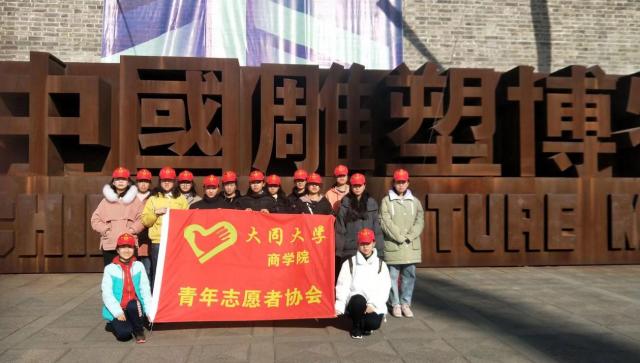 (9)“2018中国大同雕塑双年展”于2018年11月23日在大同中国雕塑博物馆举办,分为器物篇、具象篇、材料篇、户外篇、科技篇等五个篇章,遵循继承、创新、包容的宗旨,呈现2015年以来的新作。活动当天,志愿者们根据现场安排,分头行动,有的负责参会人员引导,有的负责会场布置,有的负责维持现场秩序。这不仅仅是一次志愿,更是一次锻炼自我的机会,充分展示了志愿者的青春风采。本次志愿活动丰富了志愿者们的志愿经历,也体现了中国雕塑在人类命运共同体中的使命和责任,彰显了当代中国人精神,体现了中国当代文明的特殊性。更加突出了本次活动的主题“不同”,只有不同,才有大同。